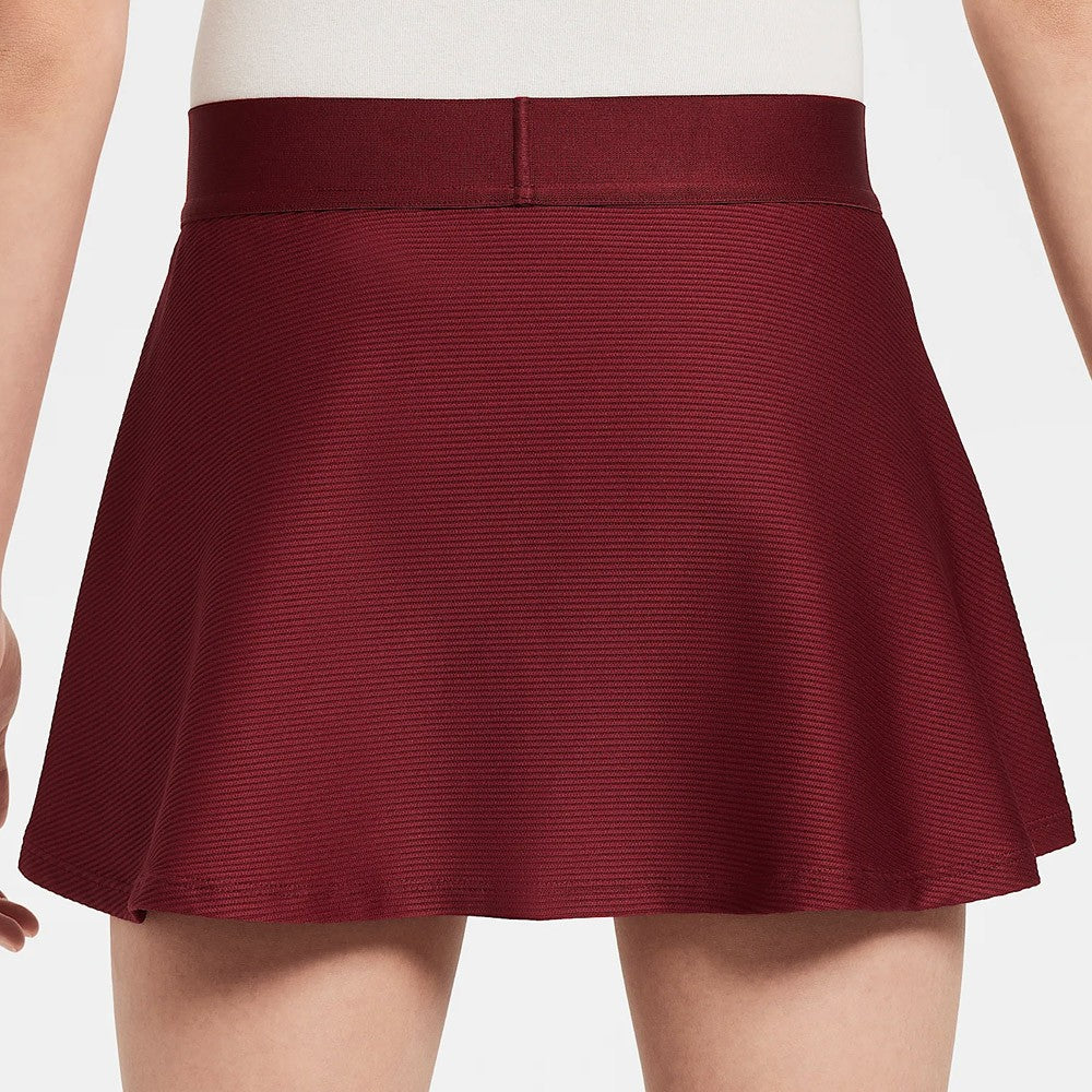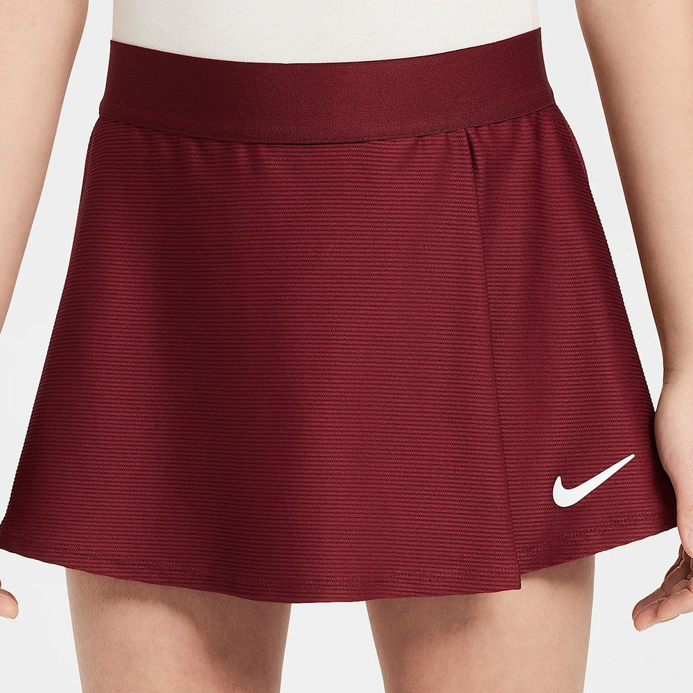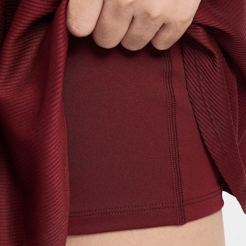 In team red, get on court in style and easy comfort. Run the court in the NikeCourt Dri-FIT Victory Skirt. Stretchy, sweat-wicking fabric in a flouncy design features a single pleat in the front, so you can move freely when your match gets going.