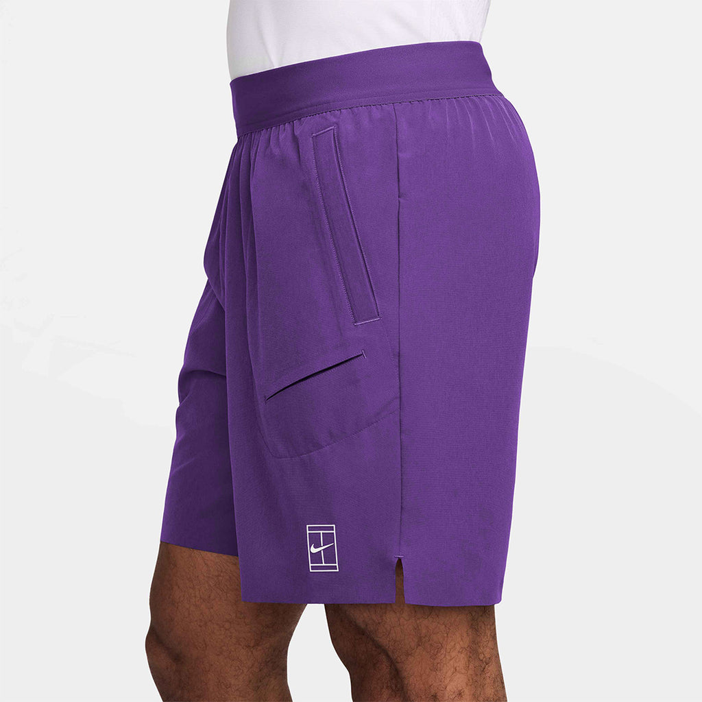 In wild grape, get on court in style. The 20cm (approx.) Advantage shorts are built from sweat-wicking Dri-FIT fabric with 4-way stretch. Specialized pockets are designed to hold tennis balls securely during play. Nike Dri-FIT technology moves sweat away from your skin for quicker evaporation, helping you stay dry and comfortable. Stretchy woven material feels lightweight and breathable. Slightly angled pleats at the bottom of each pocket expand to let tennis balls drop into your pocket and stay secure while you play.