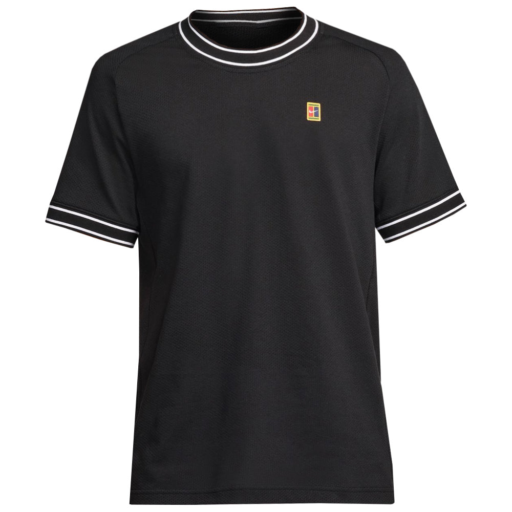Iconic Nike style in black and white. NikeCourt Heritage Men's Short-Sleeve Tennis Top Stay ready for the court with the classic-fit tennis top. Breathable, sweat-wicking material helps you stay cool and dry through each drill and practice.