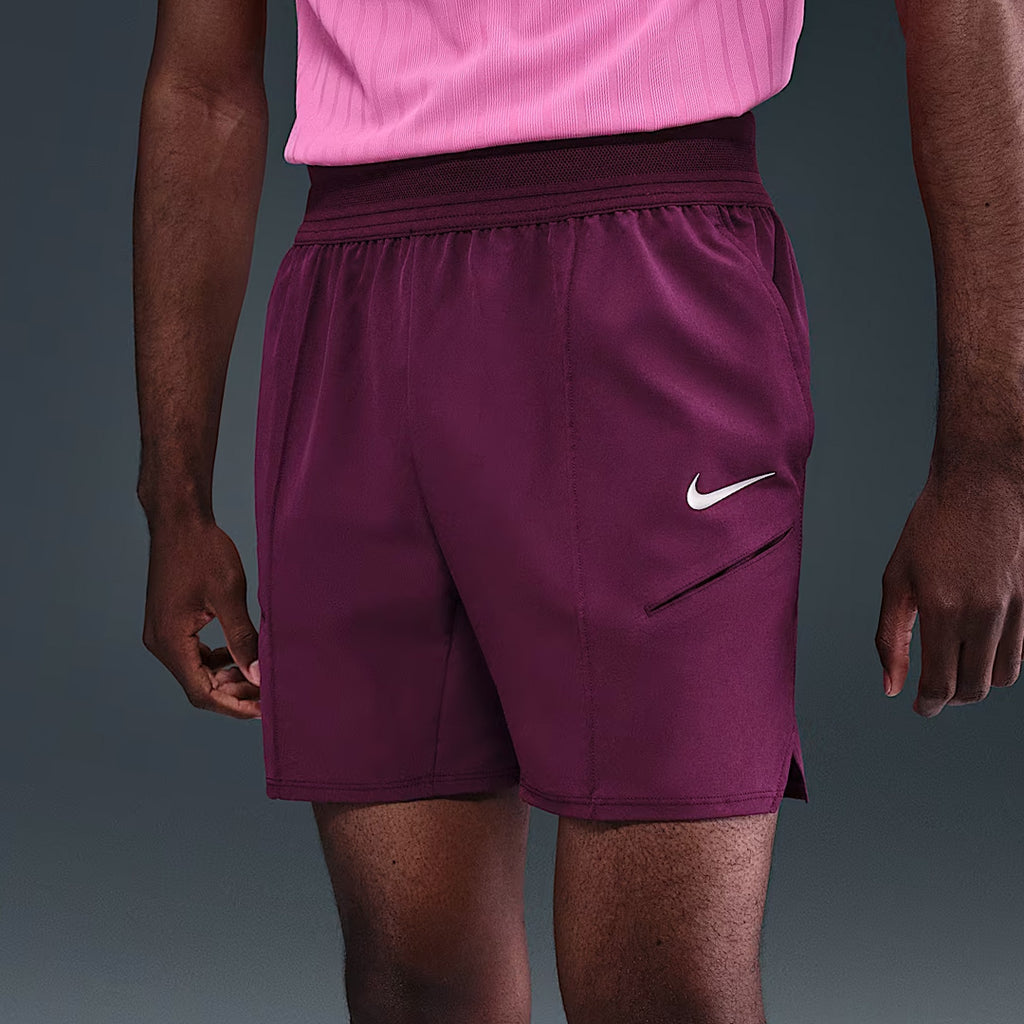 Strike the courts in style in Bordeaux. Nike updated these lightweight shorts with a six-inch inseam, keeping the sweat-wicking fabric and mesh waistband for ventilation and comfort. Nike’s signature ball pocket provides secure, easy-access storage so you're always ready to serve up the next point.