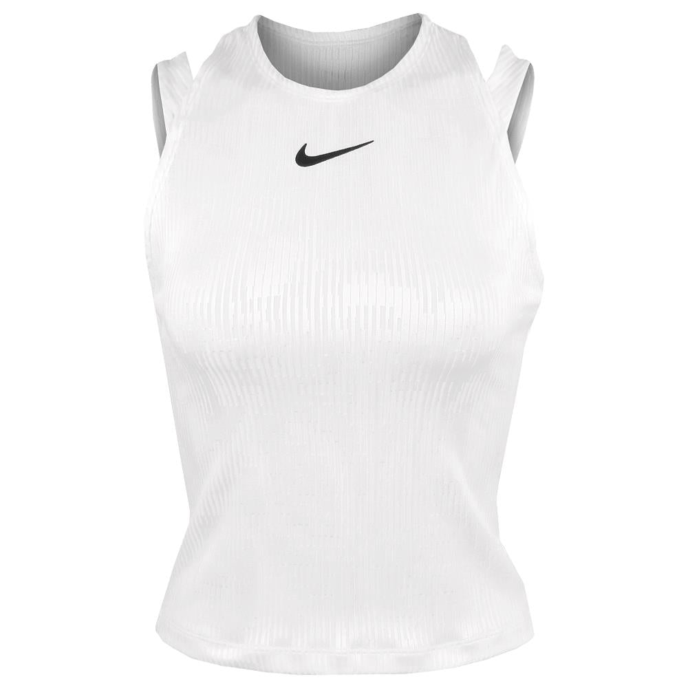 Experience style ready for the court at Wimbledon, in class white. Ideal for the grass courts, with the lively ambiance of city lights in the background. This top is designed for active play, boasting a high neckline for better coverage. Made from a lightweight, breathable fabric with a textured finish, it keeps you cool and dry, allowing for optimal stretch so you can move freely in every swing and stretch. Featuring Nike Dri-FIT technology, it effectively draws moisture away from your skin, promoting quick evaporation to ensure you stay dry and comfortable. The strap design also offers unique bra coverage.