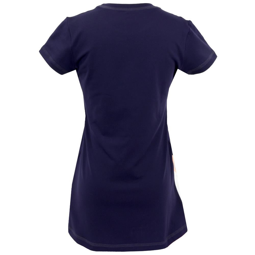 Style and stylish design in a cute and versatile tennis dress. This full back dress with short sleeves features beautiful rushing bottom hem, sun protection and "StayDry" wicking microfiber material.