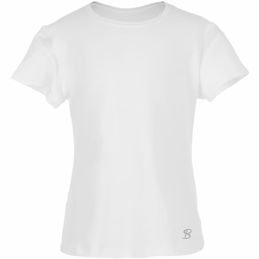 She will look great on court and be protected from the sun in this Sofibella Girl's Short Sleeve Top. Featuring pearl mesh accents at the sleeves, UV protection (UPF 50), “StayDry” material and a round neck line.