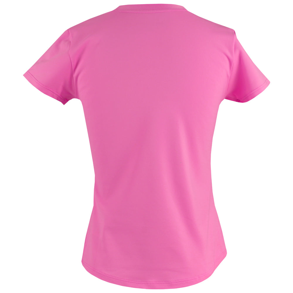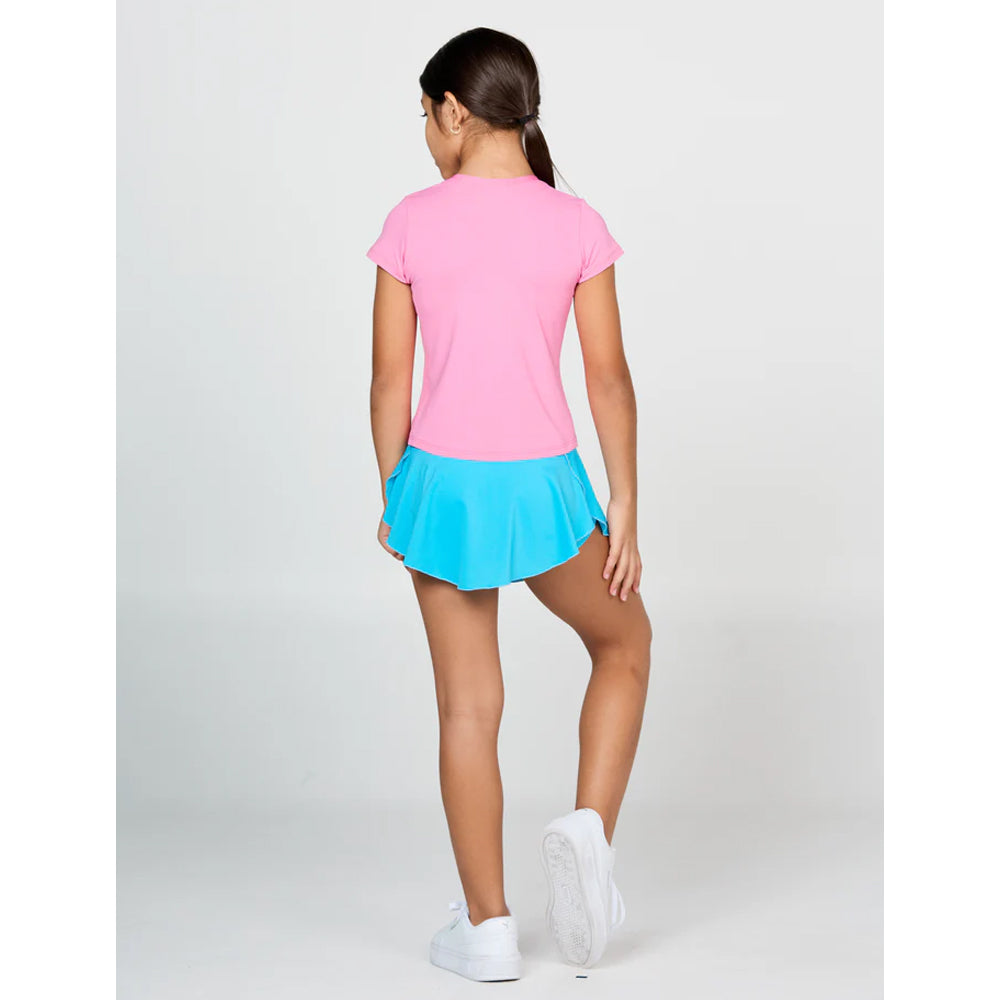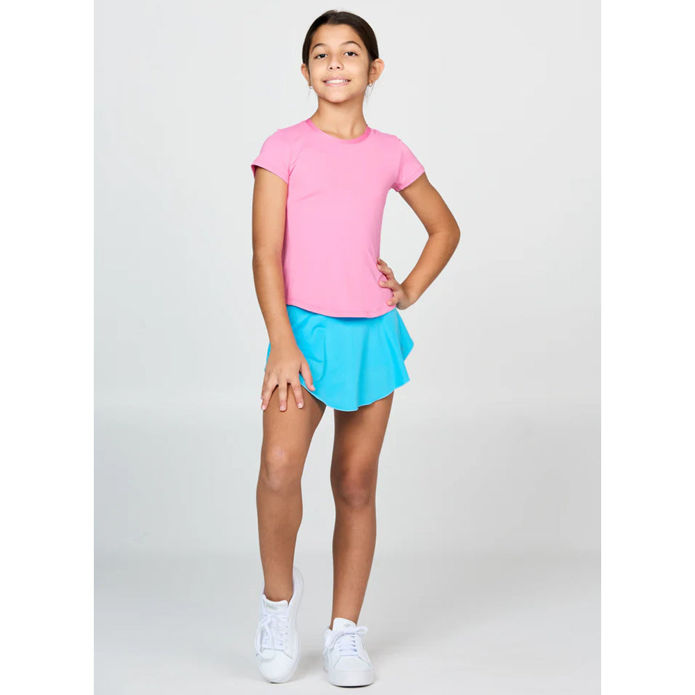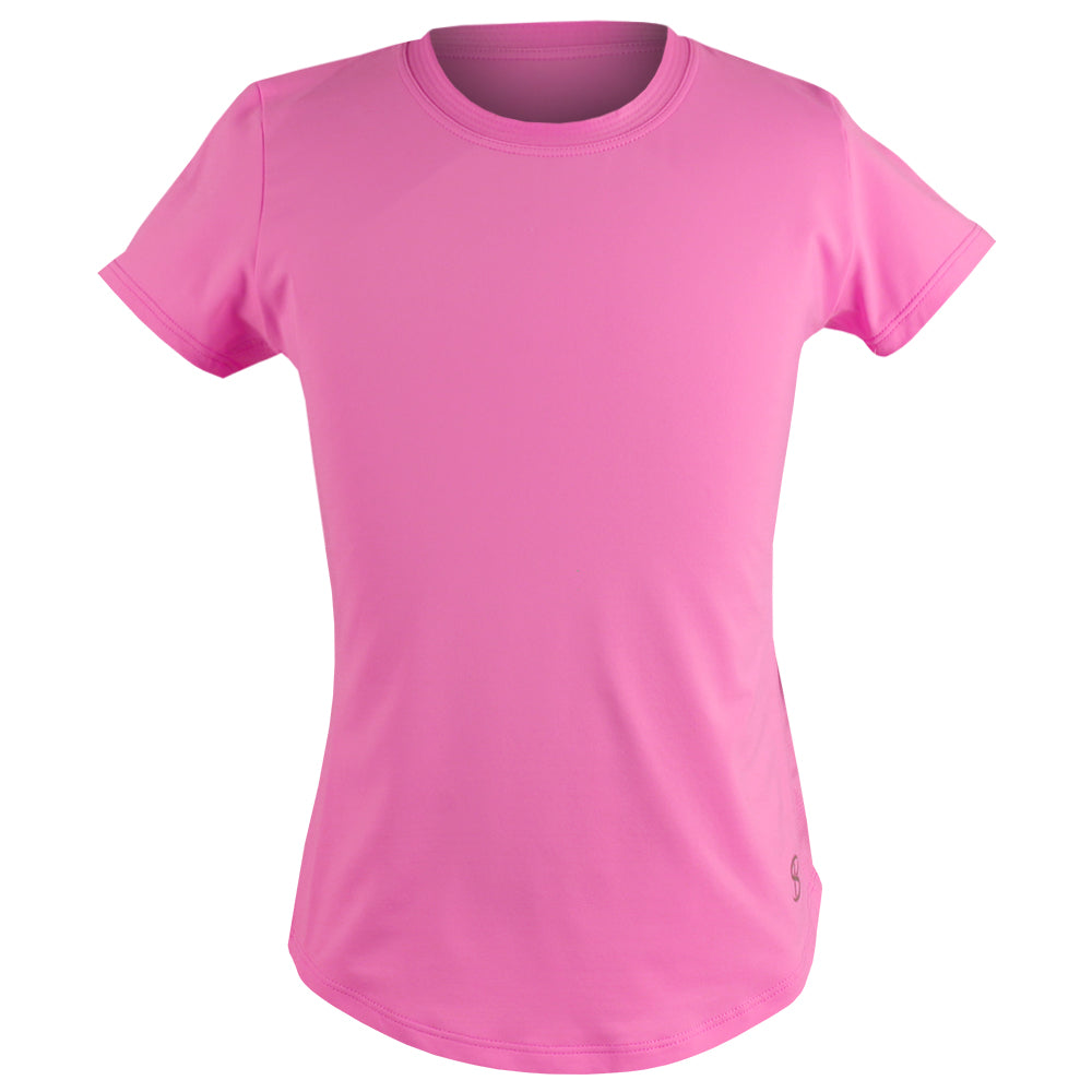 Classic pink tee for girls. This UV-protected girls' tennis short sleeve top offers full coverage for your activities on the course and court, whether your girl is swinging or serving. Our girls' tennis short sleeve top is crafted with Sofibella’s "Sofi-Premier" fabric, known for its softness, breathability, and stretchiness. Explore our variety of beautiful colors to find your perfect match, add this girls' tennis short sleeve top to your everyday tennis or athleisure wardrobe.
